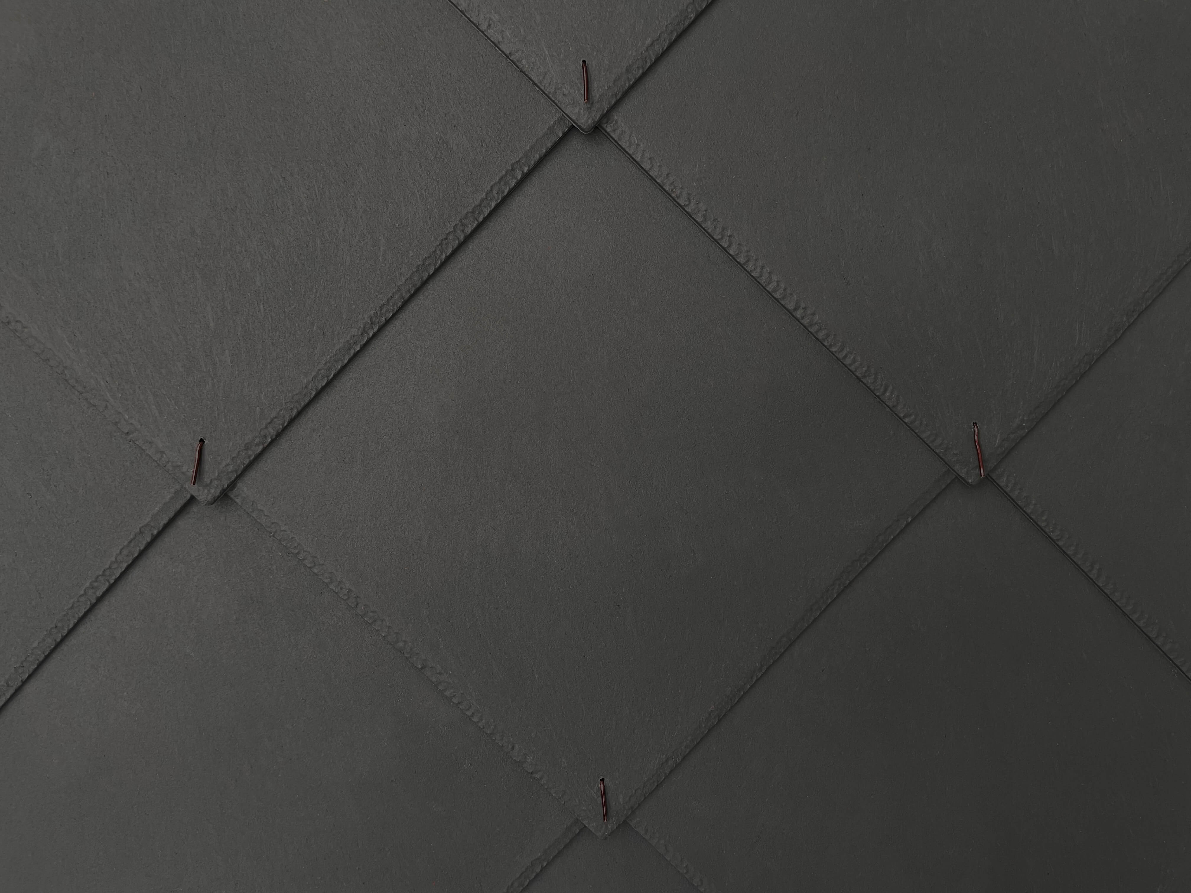Ukotvení šablon je tříbodové – 2 ks hřebíků (doporučeny měděné hřebíky cca 40 mm) a 1 ks vichrové spony 25 × 27 mm do předvrtaných otvorů. Mezi jednotlivými šablonami je nutné ponechat dilatační mezeru a hřebíky nedoklepávat natěsno, aby se krytina mohla dilatačně pohybovat bez deformací.