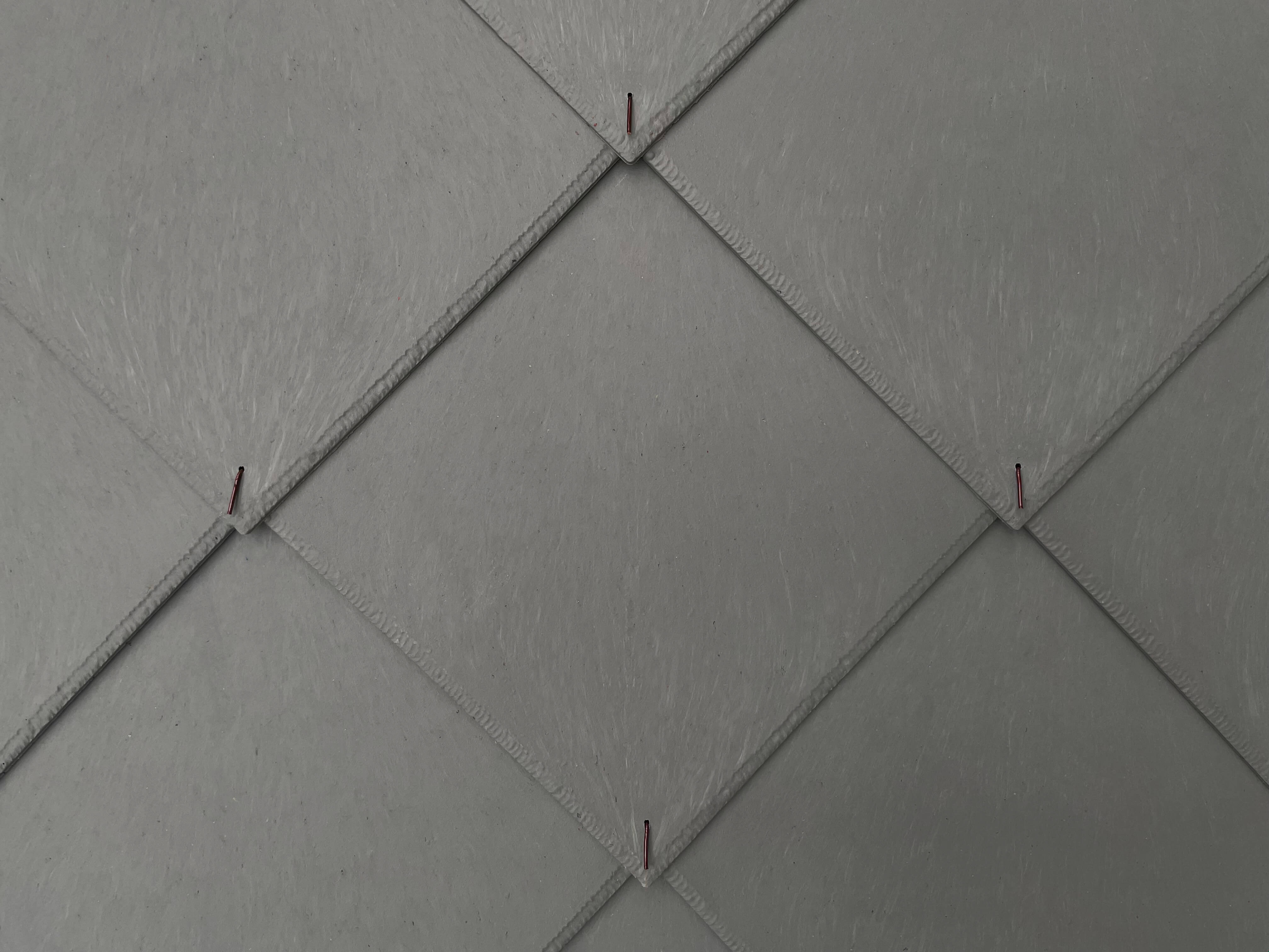 Ukotvení šablon je tříbodové – 2 ks hřebíků (doporučeny měděné hřebíky cca 40 mm) a 1 ks vichrové spony 25 × 27 mm do předvrtaných otvorů. Mezi jednotlivými šablonami je nutné ponechat dilatační mezeru a hřebíky nedoklepávat natěsno, aby se krytina mohla dilatačně pohybovat bez deformací.