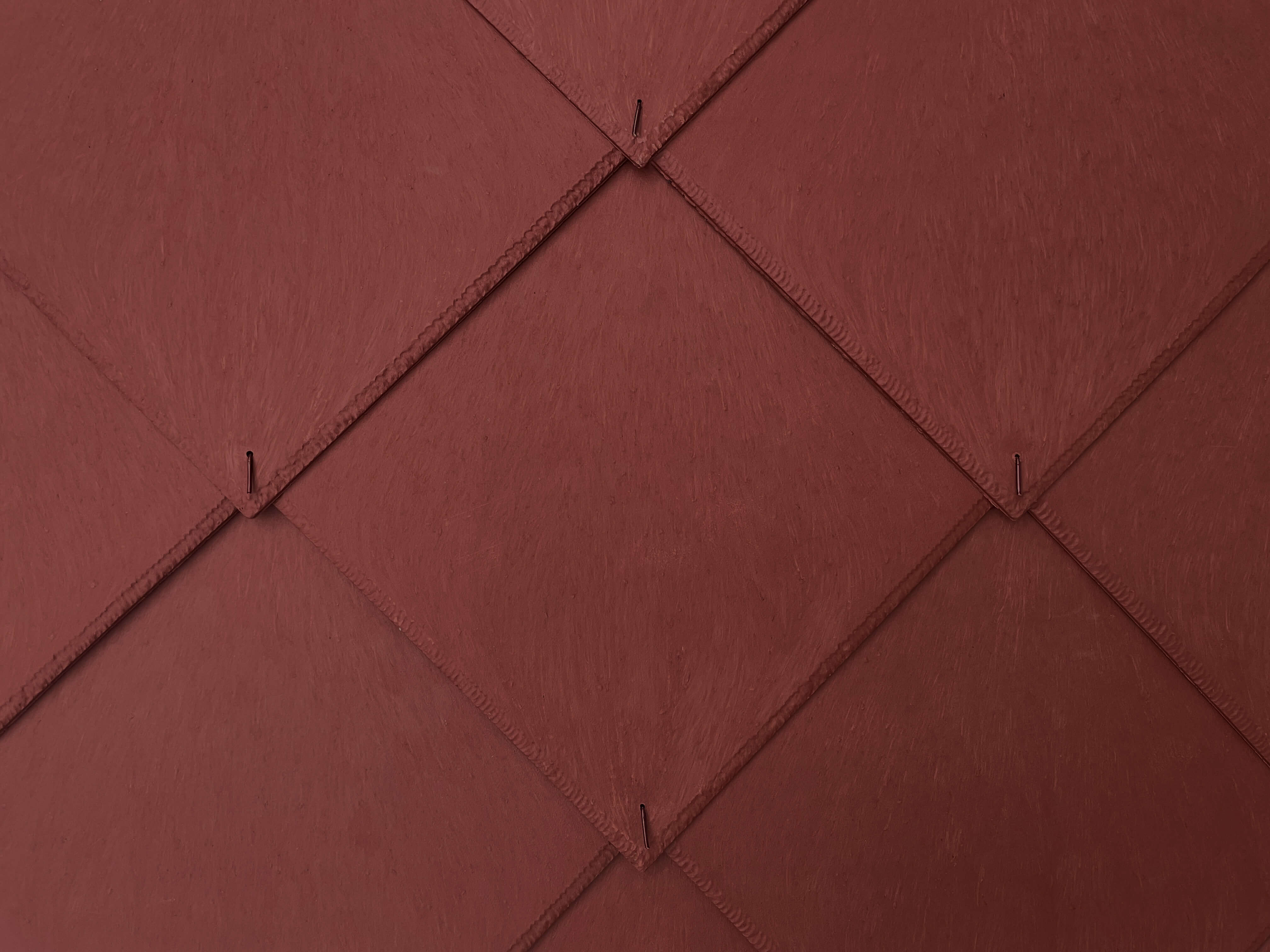 Ukotvení šablon je tříbodové – 2 ks hřebíků (doporučeny měděné hřebíky cca 40 mm) a 1 ks vichrové spony 25 × 27 mm do předvrtaných otvorů. Mezi jednotlivými šablonami je nutné ponechat dilatační mezeru a hřebíky nedoklepávat natěsno, aby se krytina mohla dilatačně pohybovat bez deformací.