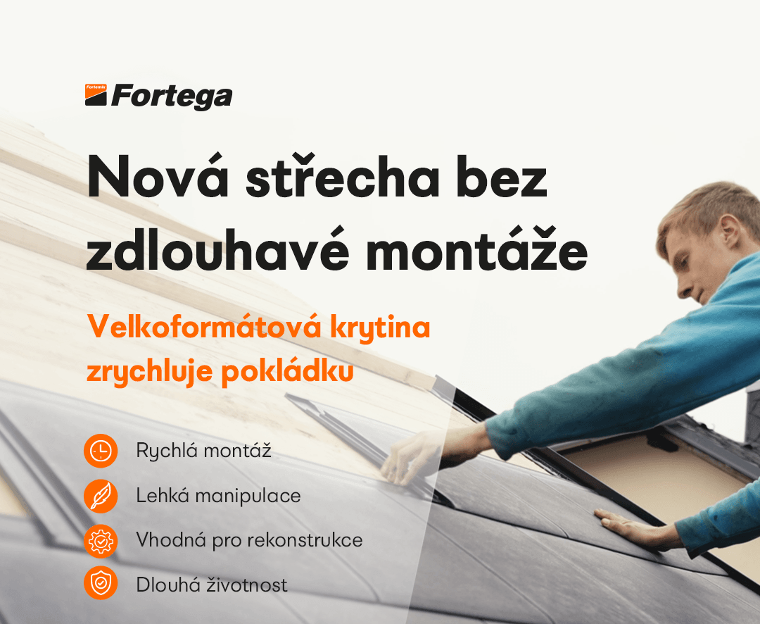 Fortega Neo poskytuje lepší ochranu proti hluku než plechové krytiny a zlepšuje akustickou pohodu v interiéru. Nízká hmotnost redukuje zatížení krovu, ulehčuje logistiku a zkracuje dobu montáž.