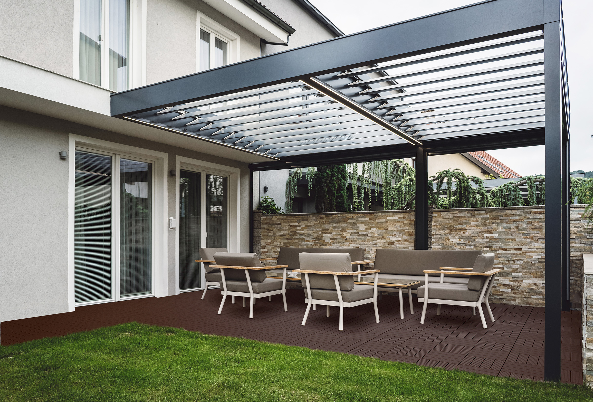 Venkovní plocha díky tomu vypadá líp a zároveň je praktická. Dobře se po ní chodí i za mokra.